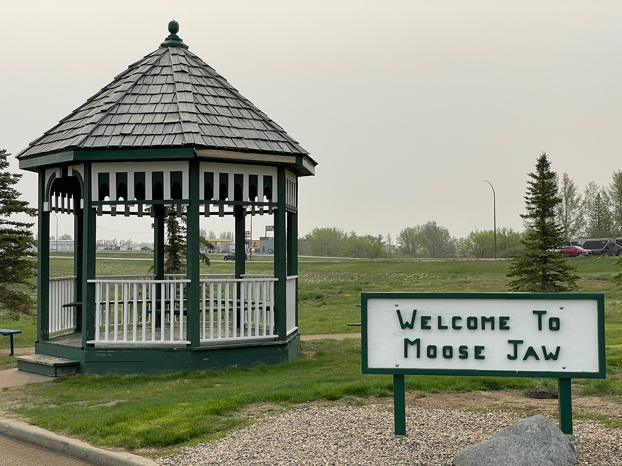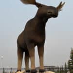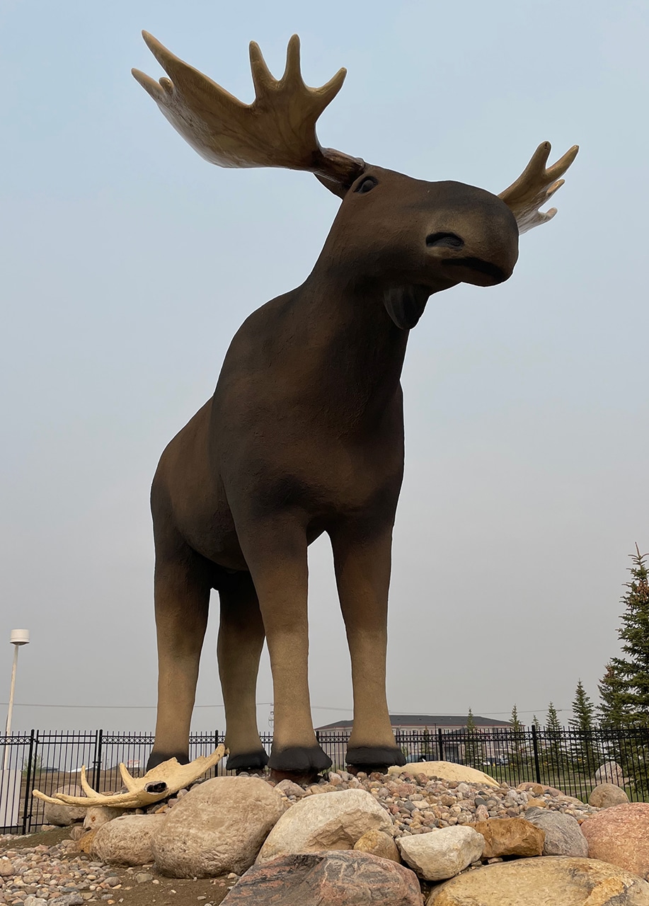 This morning had a weird haze in the sky as we traveled just down the street to Moose Jaw’s Visitor Center for a look at Mac the Moose. Mac is a steel and concrete sculpture and is claimed to be the world’s largest moose at almost 34-feet tall and weighing in at approximately 22,400-pounds. Mac was pretty impressive and gave me hope that we’d see lots of moose on this trip! Click on the link for more great pictures of Mac.