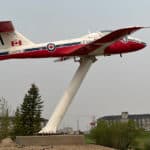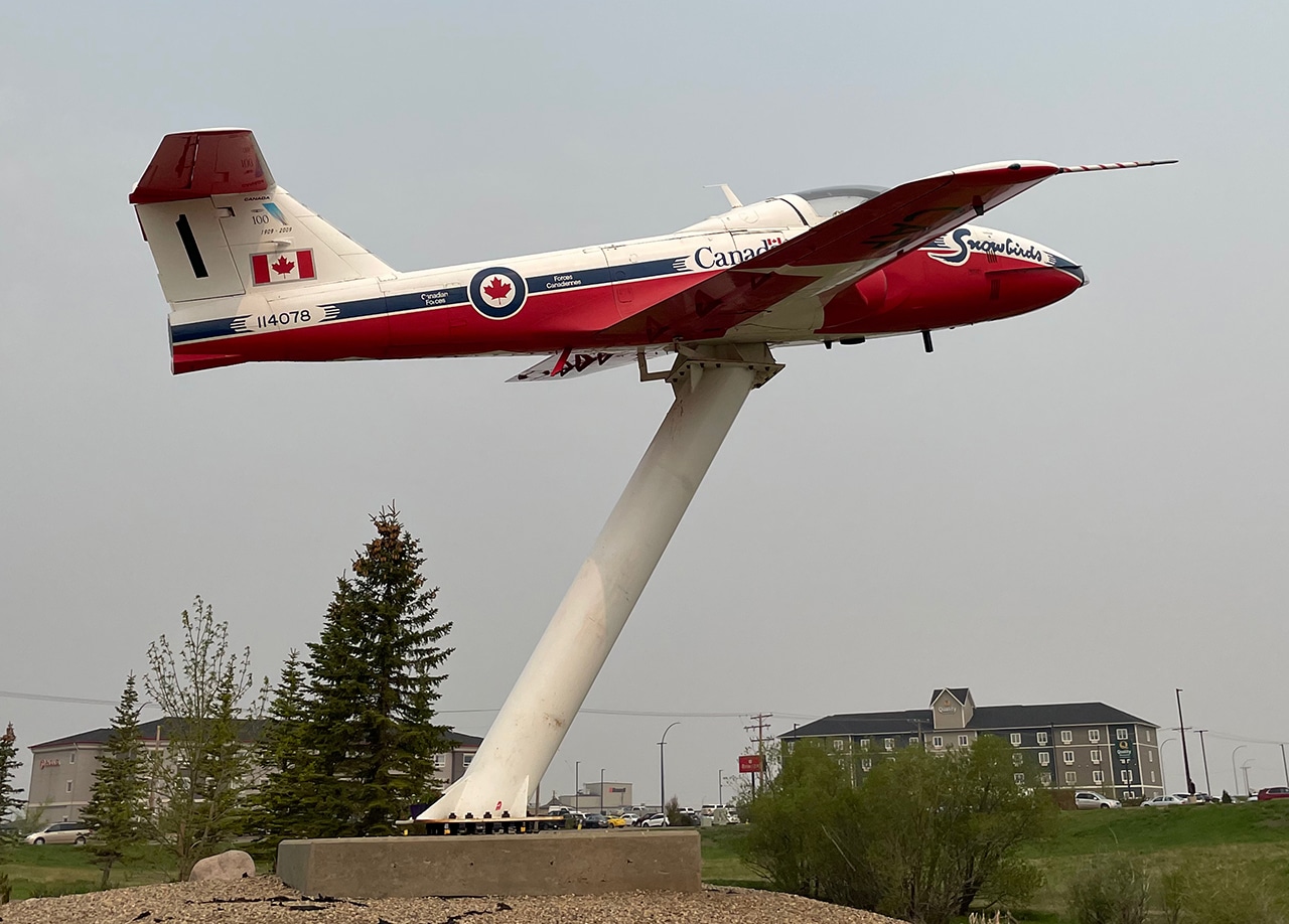 Located in the same area was a CT-114 Tutor Jet, painted in the colors of the Snowbirds. The Tutor Jet joined Mac the Moose to beckon travelers in from the highway in 2009.