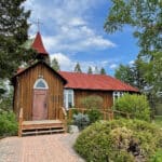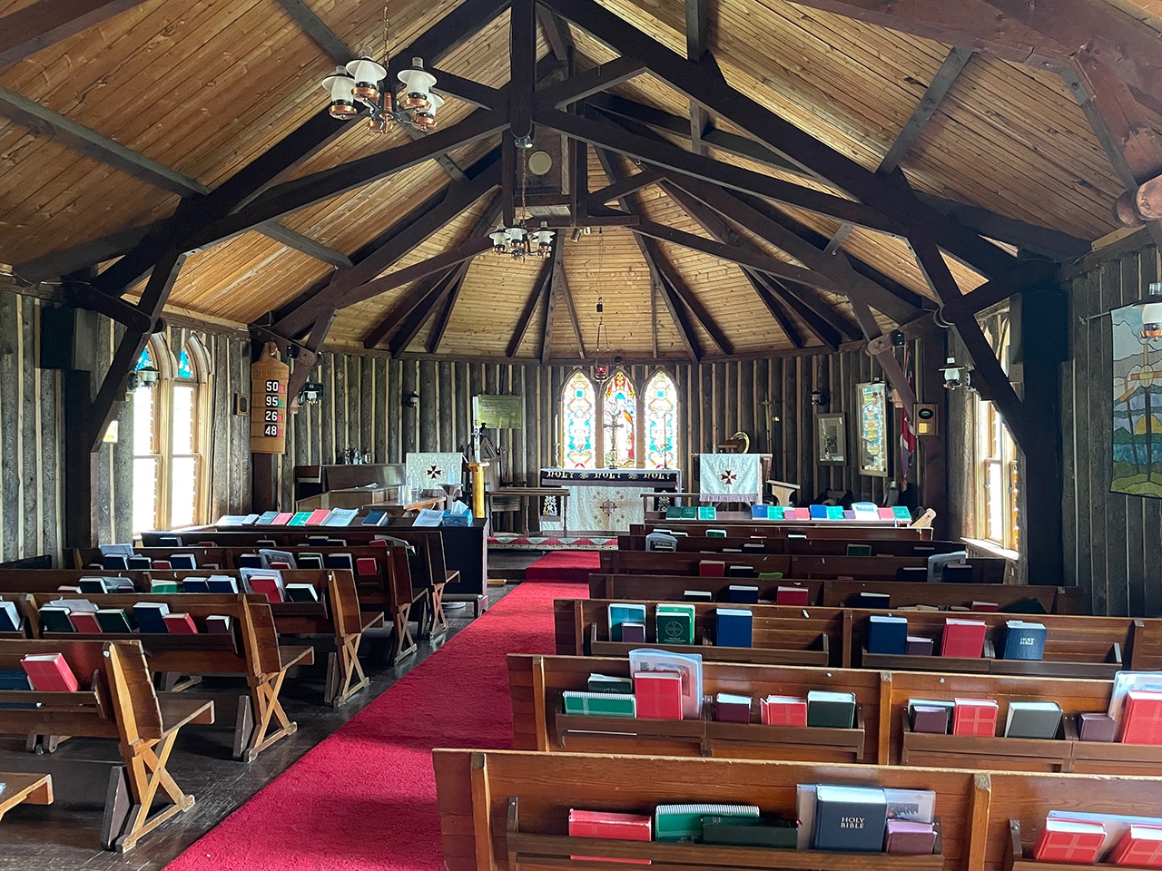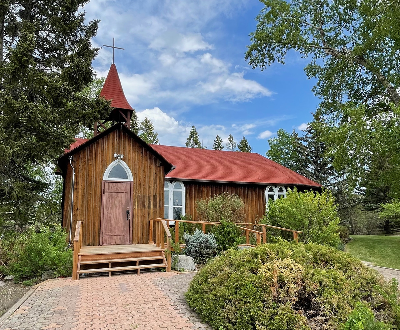 We had a little trouble getting to Millarville Christ Church because the river had flooded the road, and we were reluctant to transverse it given our non-off-road vehicle – especially given all that would be at stake – like the rest of this vacation! We turned around (and didn’t drown) and Jim found an alternate route. The beautiful vertical log cabin (the site of Lou and Peter’s wedding) is the oldest of its kind around and it was fantastic! We were even able to get inside!