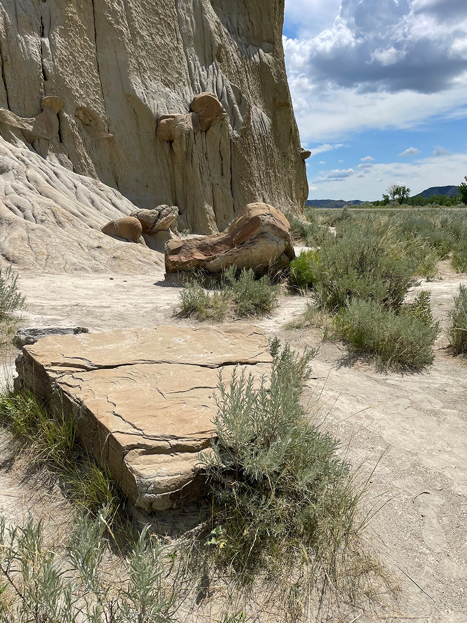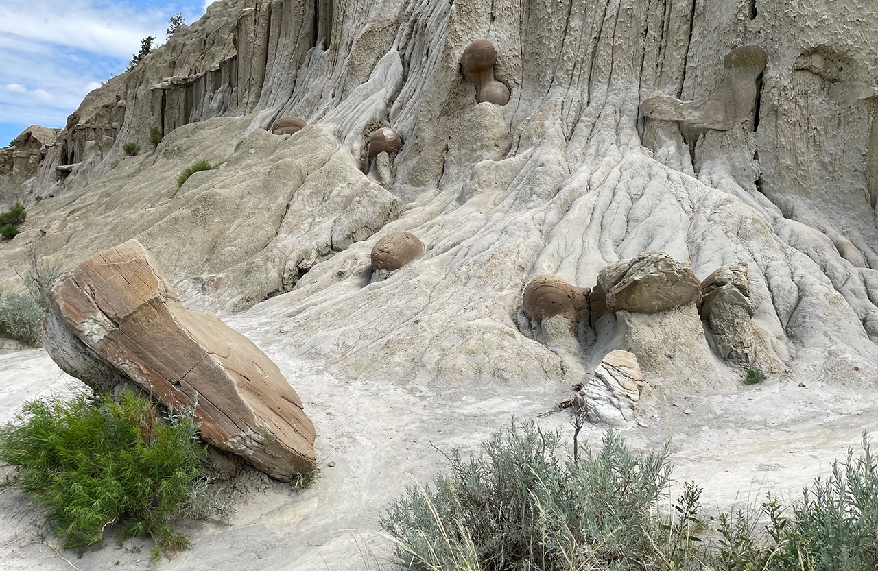 “The large, round rocks littering the ground and protruding from the butte are bizarre. They don’t seem to fit with the rest of the landscape. Where did they come from?