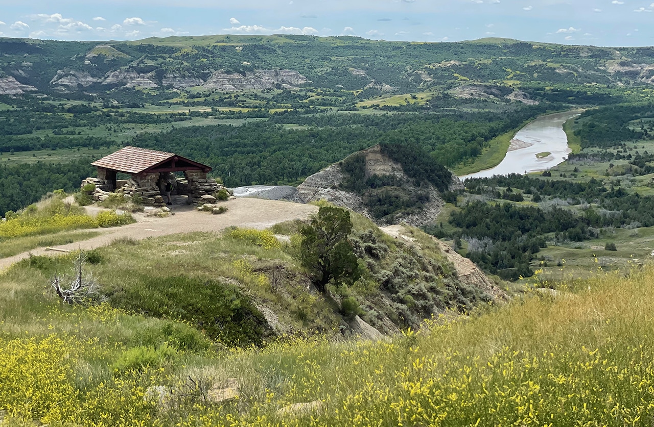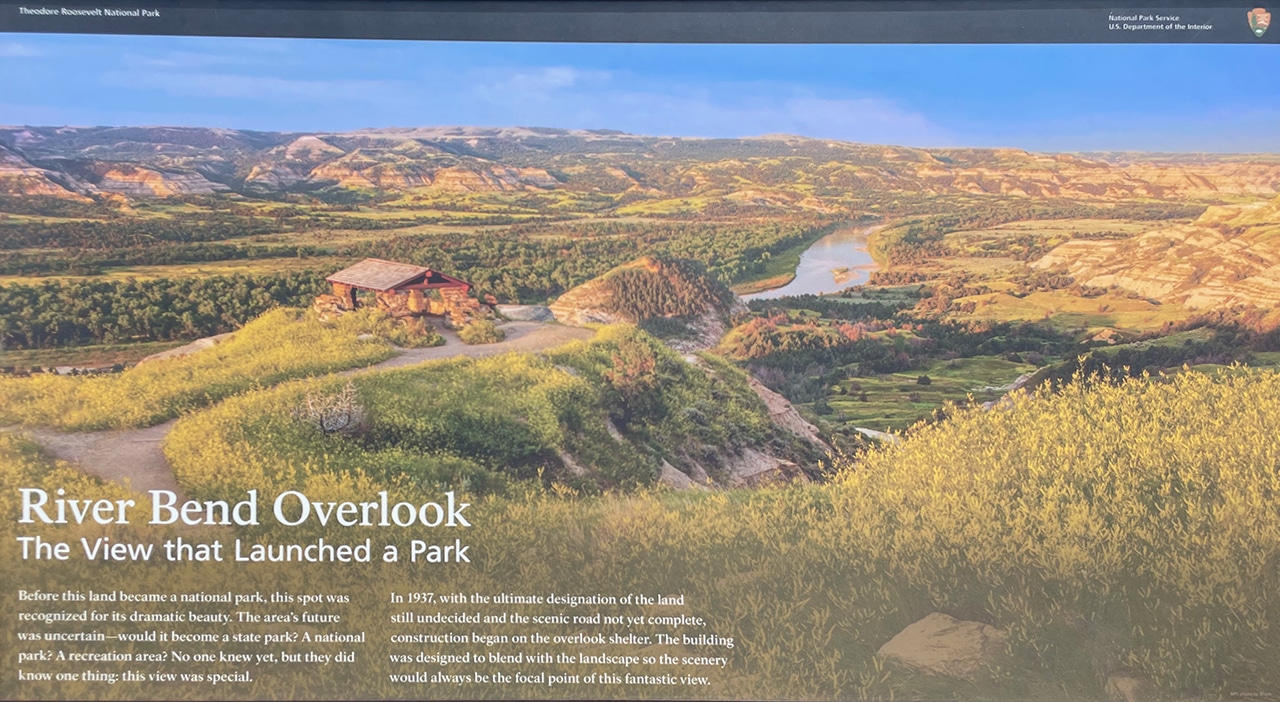 “There are many beautiful views in Theodore Roosevelt National Park, but perhaps none are better than the view from the shelter at River Bend Overlook. Built by the Civilian Conservation Corps circa 1937, this stone structure stands on the edge of a butte, providing a dramatic view of the Little Missouri River valley below. It also serves as a tangible example of the projects created by the CCC on the land that would eventually become Theodore Roosevelt National Park.” ~ READ MORE