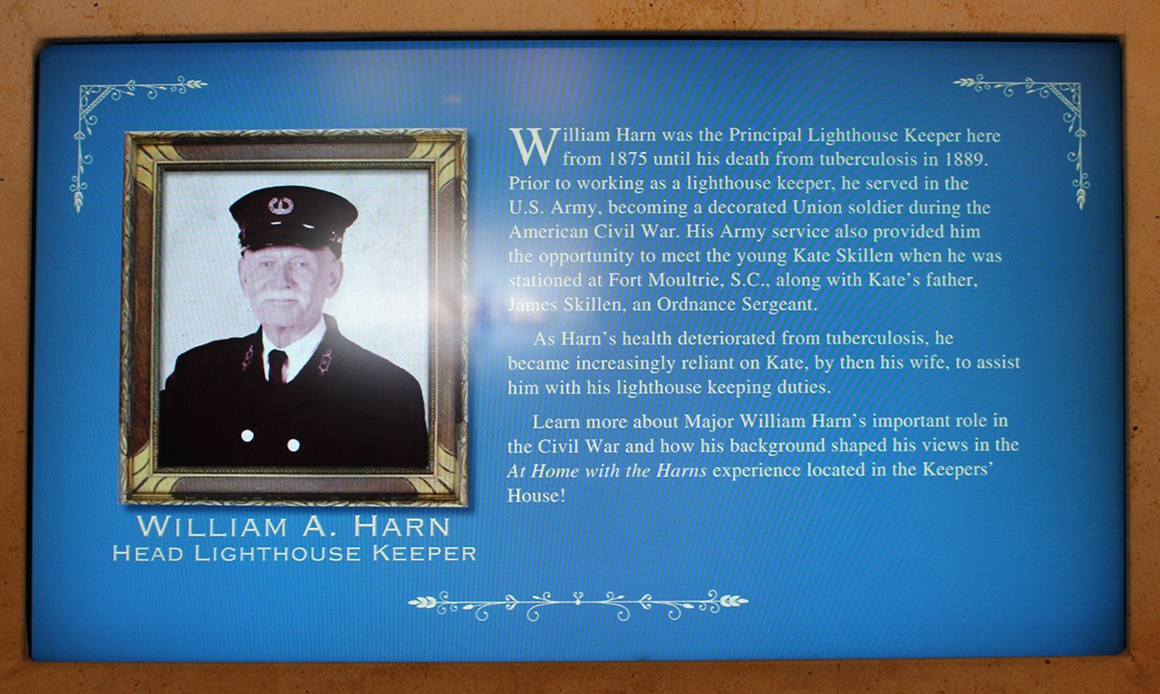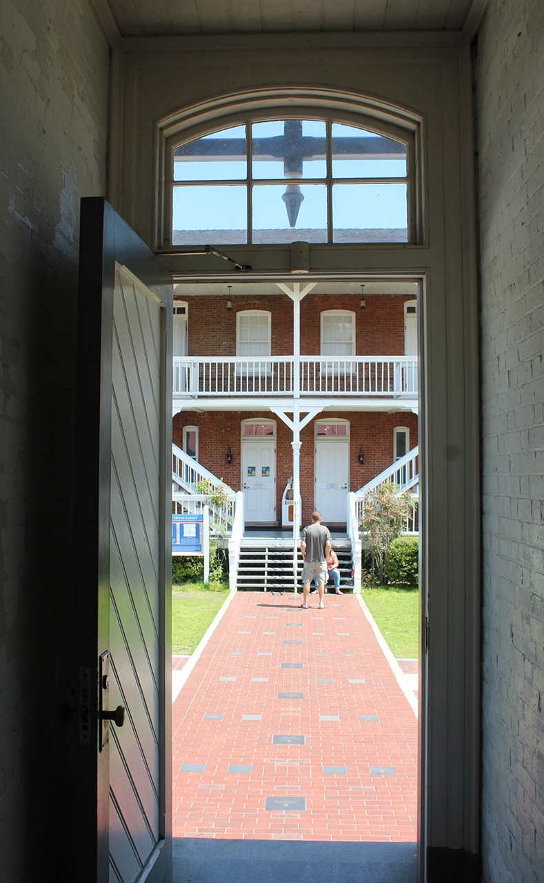 We came onto the grounds in a central area – the back yard of the keeper’s house, so we decided to check that out first. It was gorgeous on the outside with bright white railings all around. The interior rooms were decorated beautifully in the style of the late 1880s. “At Home with the Harns” is an interactive display that tells a story of each family member. There you could read about what life was like for the light keeper’s family in St. Augustine at that time.