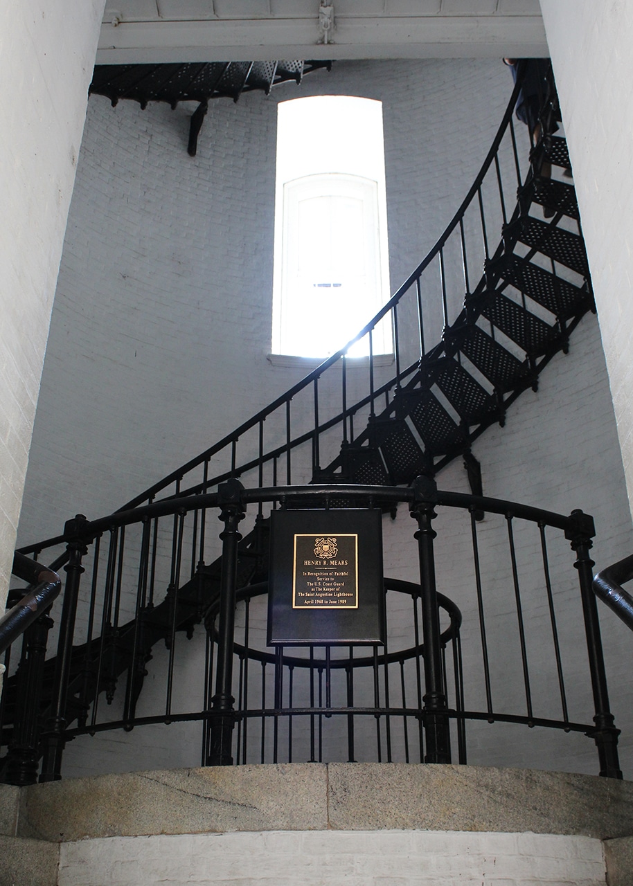 We came into St. Augustine from the south on A1A, and oohed and aahed at all the sites we’d be seeing over the next week. We decided to visit the St. Augustine Lighthouse & Maritime Museum on our way through today and were immediately impressed. Beautiful diagonal black and white stripes decorate this lighthouse in a more traditional way than the red ones we saw earlier in the day, although they did add a splash of bright red on the observation deck and lantern room – which was pretty beautiful.