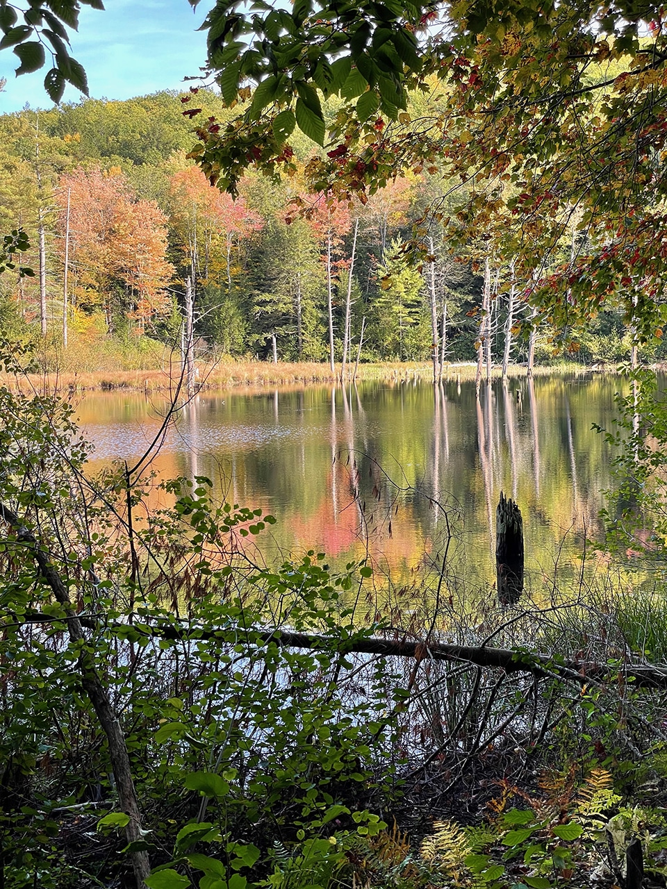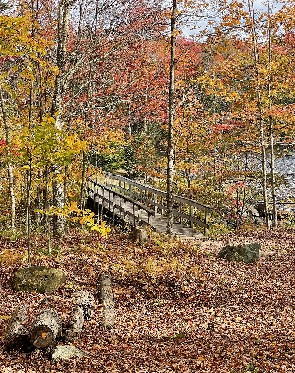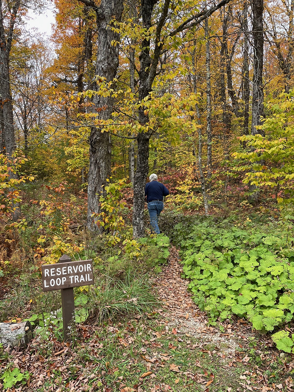 We ended up on a section of the Reservoir Loop Trail, which was a wonderful find. It was not too strenuous for us senior citizens (lol), but long enough to enjoy the fall colors and the fresh smell of the trees. Nothing invigorates the soul like a walk in the woods… in the fall… in Vermont.