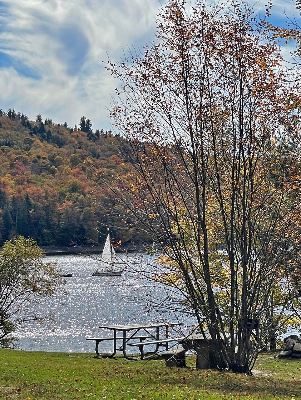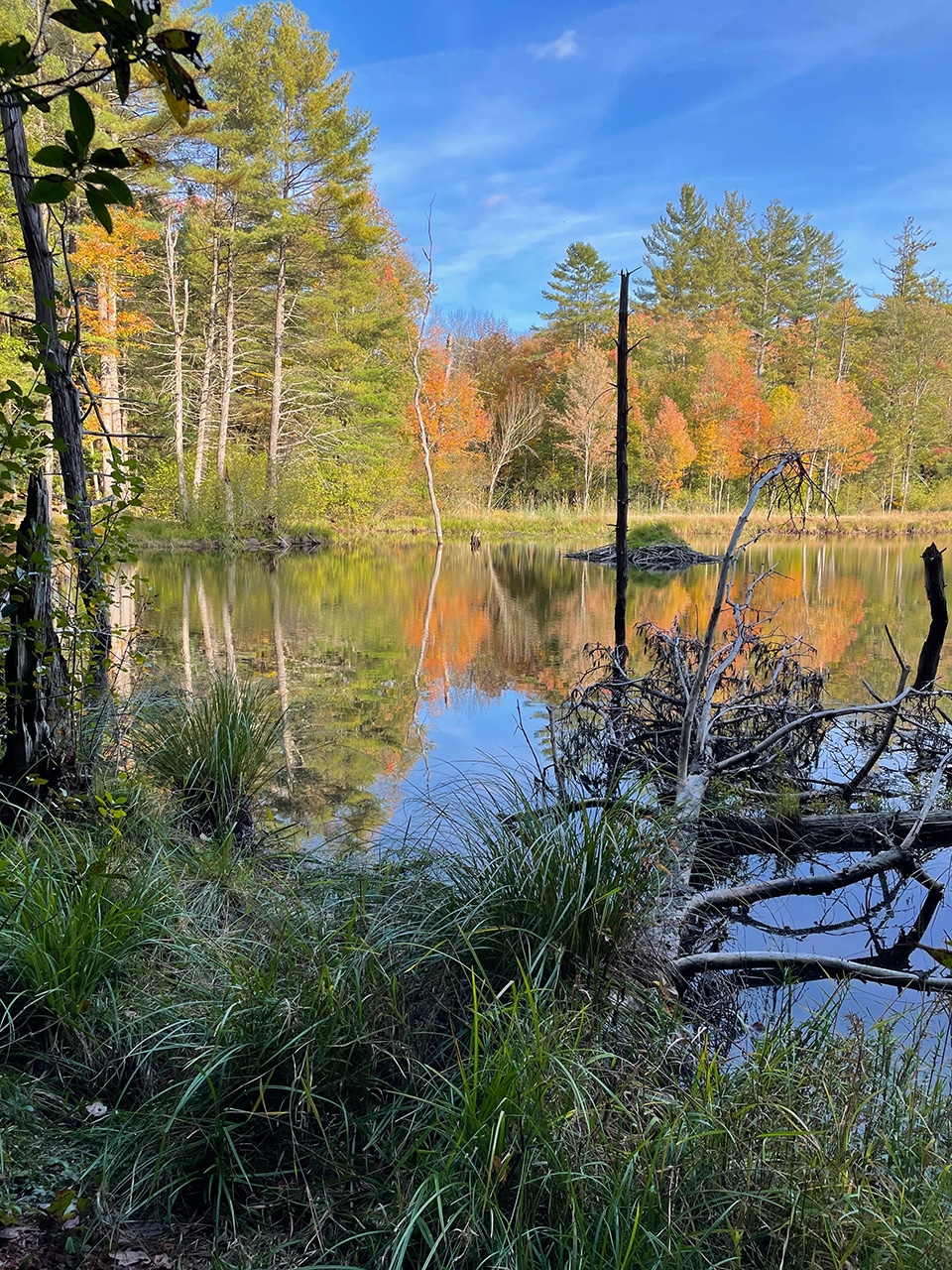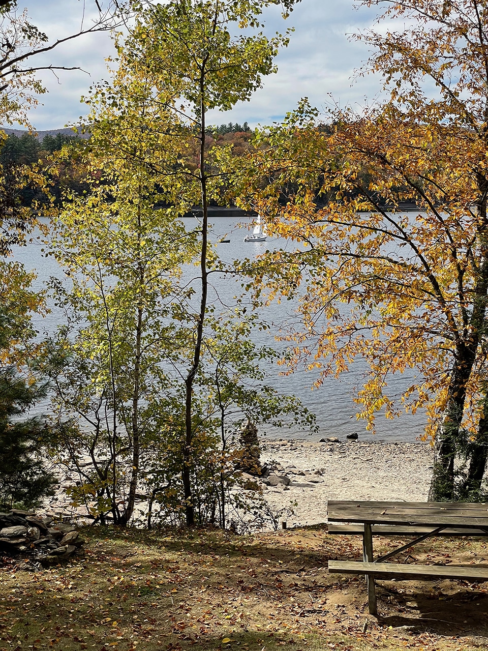 We ended up on a section of the Reservoir Loop Trail, which was a wonderful find. It was not too strenuous for us senior citizens (lol), but long enough to enjoy the fall colors and the fresh smell of the trees. Nothing invigorates the soul like a walk in the woods… in the fall… in Vermont.