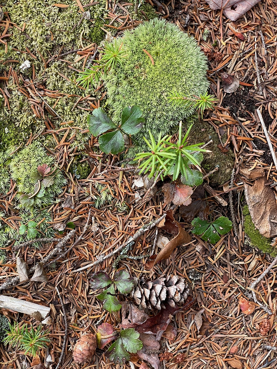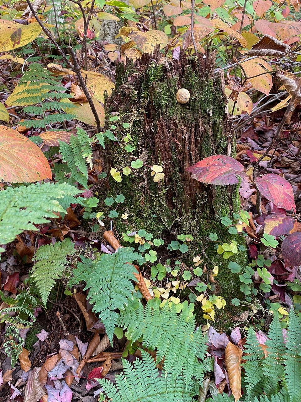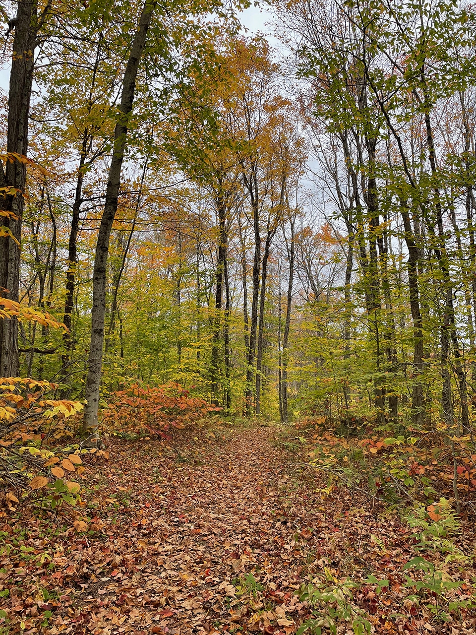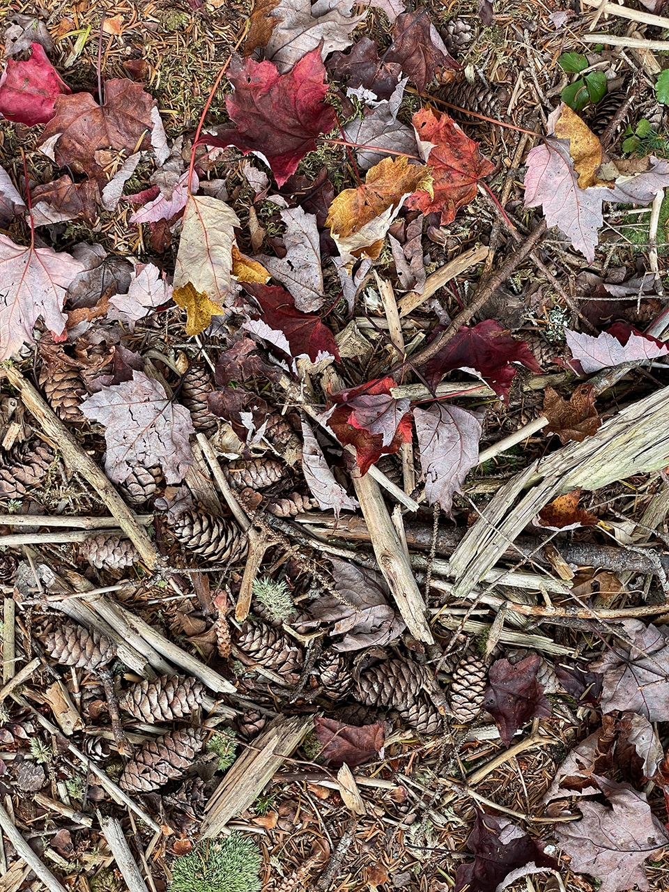 I love the serenity in the first photo below. In an effort to not disturb one single leaf with our clunky boots, we’ll leave that path (or road?) for next time.