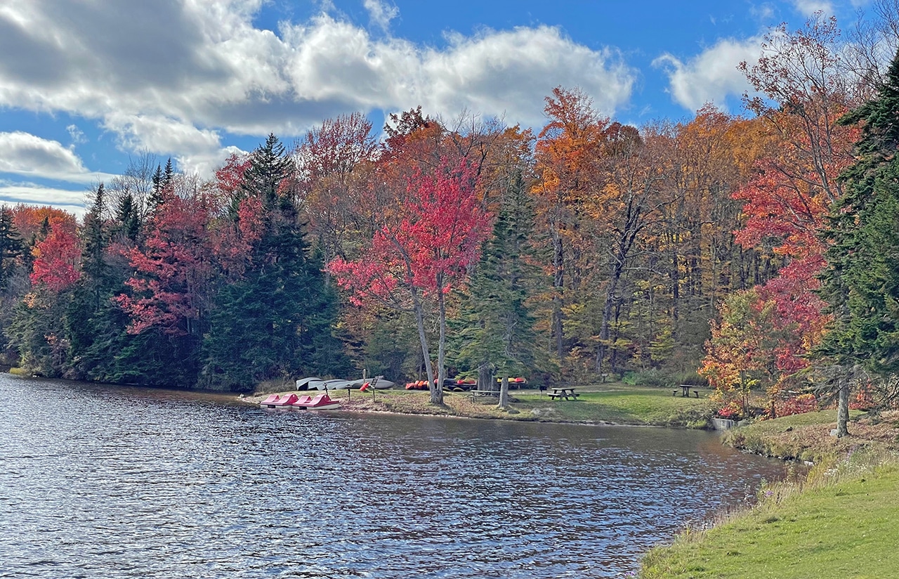 Woodford State Park is full-service with camping, four small cabins for rent, several hiking trails (including a 2.7 mile trail around the lake), and a small beach for swimming. Boats are available to rent and fishing may reward you with a brook trout.