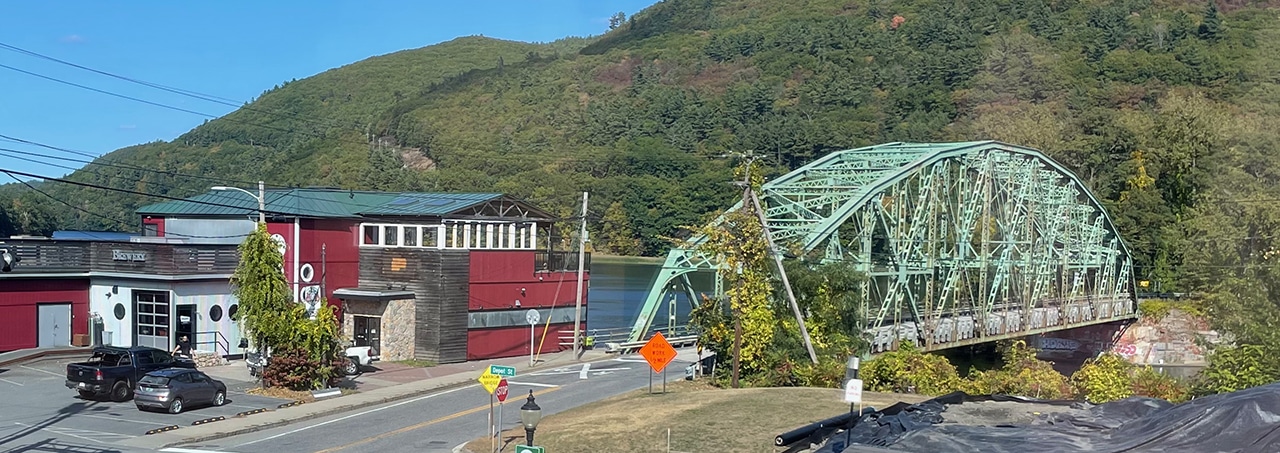 Next up was supposed to be Whetstone Station on the bank of Connecticut River, seen below from the back window of the Art Center. We were set to request outdoor seating, “for a gorgeous view while we eat and/or sip”. Turns out it’s permanently closed.