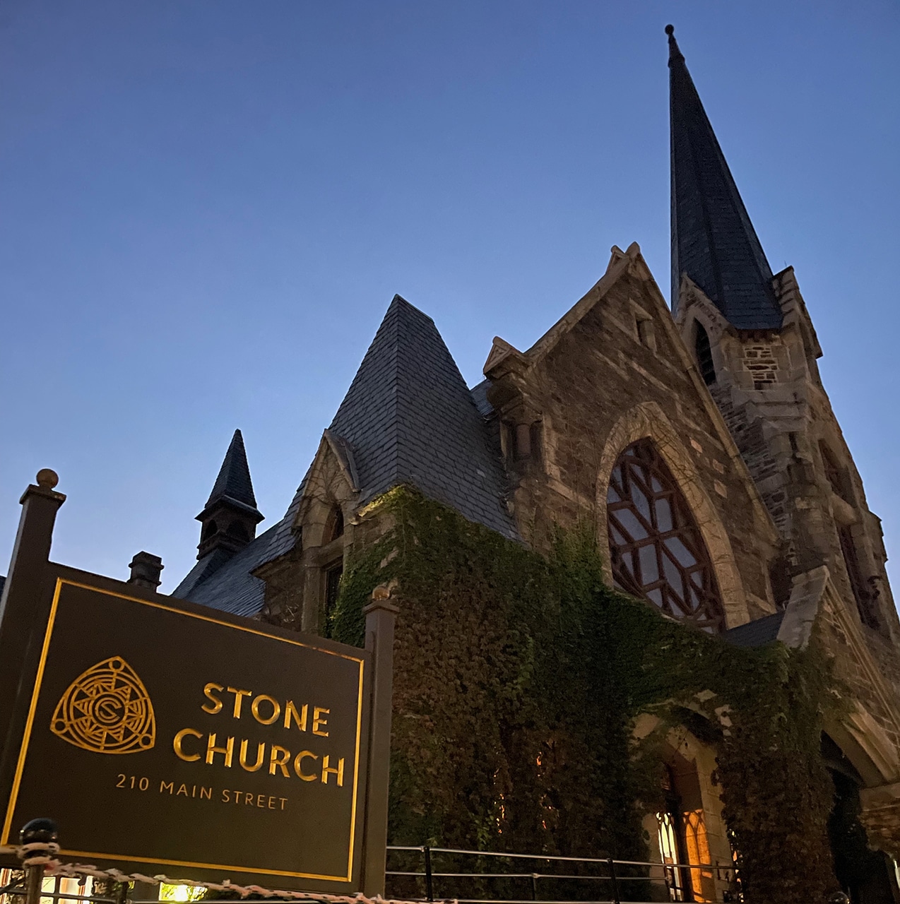 We arrived with plenty of time to enjoy some dinner and a cocktail before the concert at the Stone Church. Apparently I had old info while making our plan for the evening, because when we arrived, the place was locked up. We talked with a band member who was getting set up, and he said we could not enter until just before the show.
