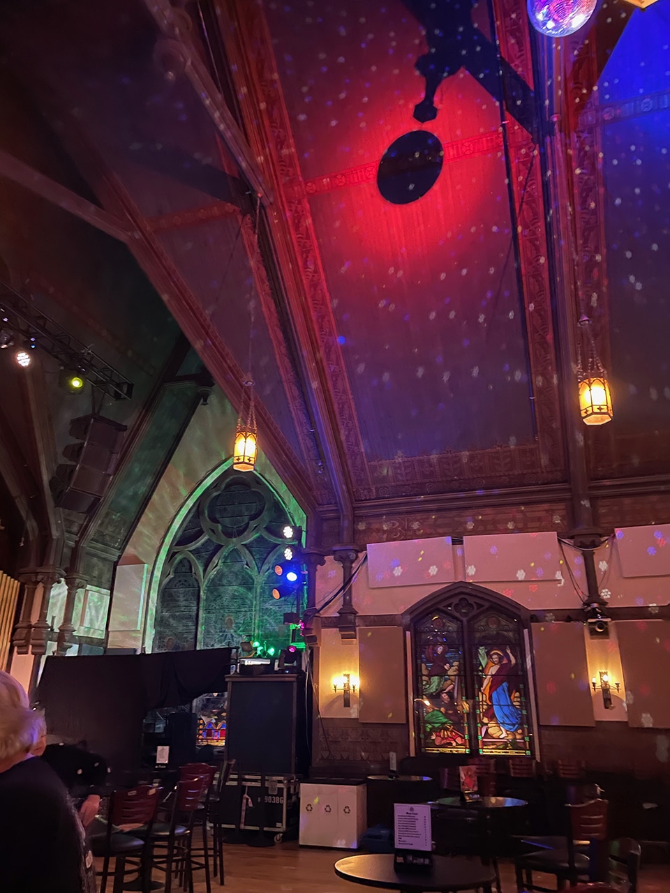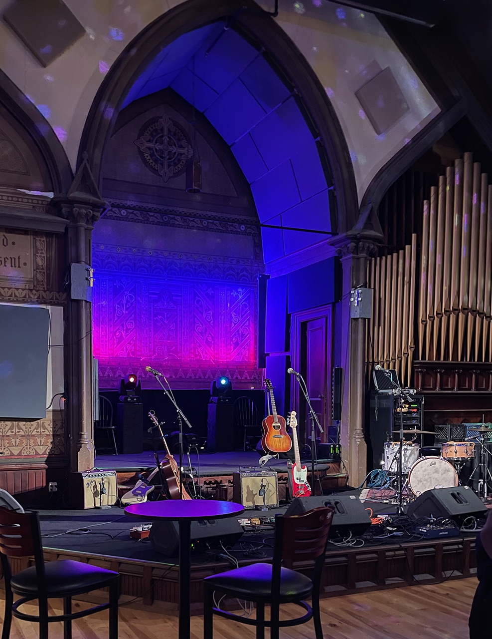 Usually playing separately, these long-time friends decided to put together a great show for this evening! Molly Parden, Louisa Stancioff, Eliza Edens, and their drummer blessed us with a relaxing and enjoyable evening. Their camaraderie and friendships made them very comfortable with each other and they had some funny stories to tell! Because we weren’t sure how busy it was going to be and we wanted a seat, we paid for seats in the church choir balcony, but ended up downstairs at a table with a nice crowd. The Tower Bar and Stone Church gave us a great introduction to the funky nature of Brattleboro. We’ll be back!