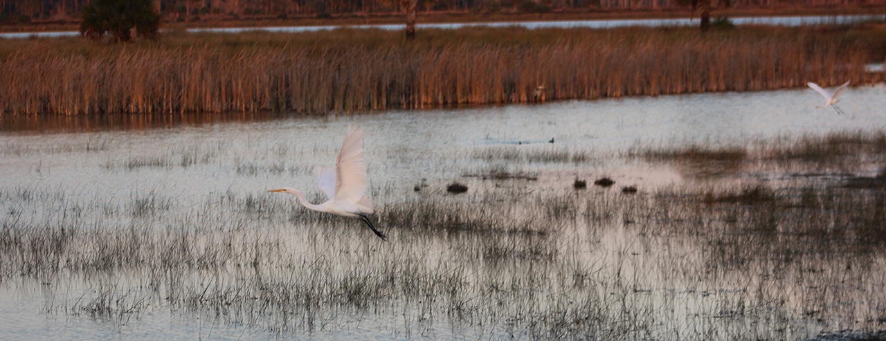 Since most of the birds were in the other area above, the last photo below is from last time too, showing the lovely egret gliding effortlessly along the swampy grasses. This whole area, which was teeming during our last visit, seemed rather deserted.