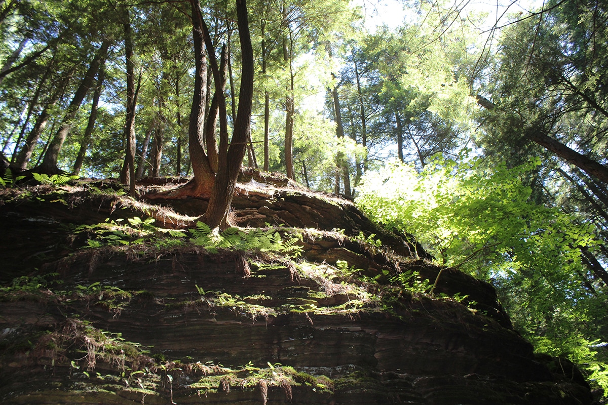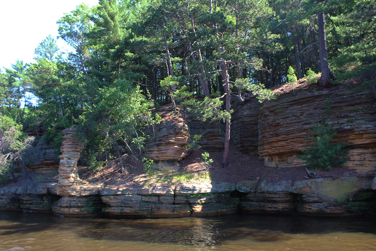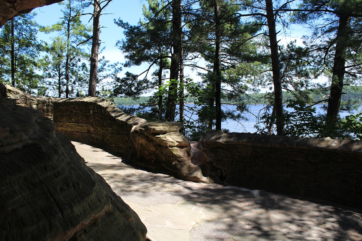 “According to Native American legend it was a great serpent, wriggling down from the north and his home near the Big Lake, that formed the bed of the Wisconsin River. Crawling over the forests and the fields, his huge body wore an immense groove in the land and the water rushed in behind him. When he came to the sandstone ridge where the Dells begins he thrust his great head into a crevice between the rocks and pushed them aside to form a narrow, winding passage. At his approach, lesser serpents fled forming the canyons which lead off from the main channel. It was these timid, lesser serpents that formed Coldwater Canyon and Witches’ Gulch, so the legend goes.