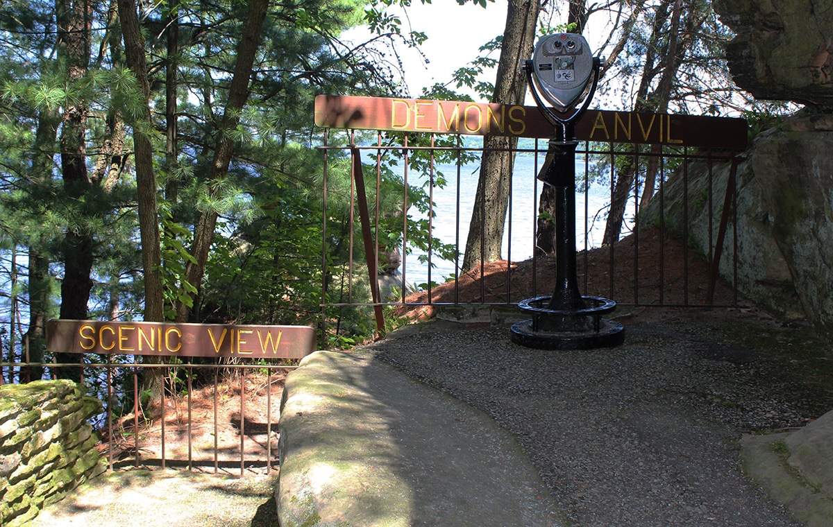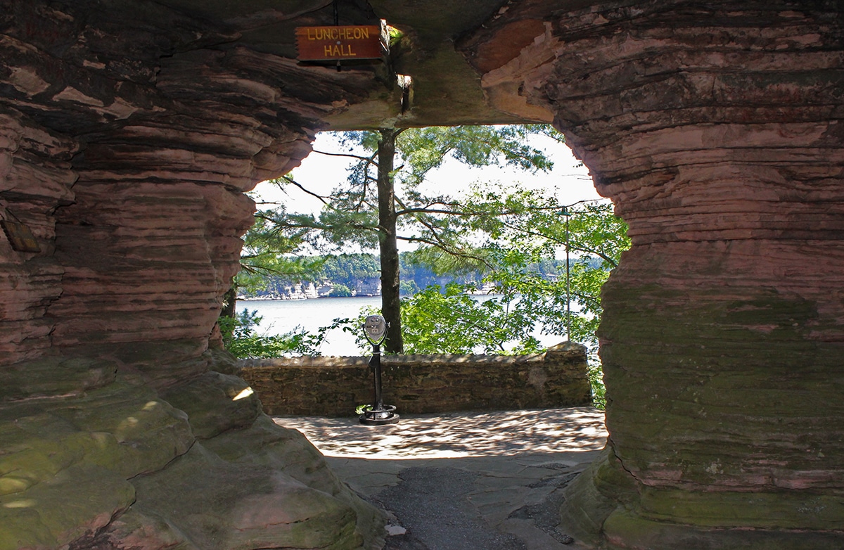 “As provocative as its views, are the eerie tales that help define Witches Gulch. Hugged by steep bluffs on either side, explorers are lured into the depths of the cavern passing by Witches Falls as it empties into Witches Bathtub, elements of a fast-moving trout stream continually transforming the gorge. Passage through Spooky Lane conjures up thoughts of venturing into the gulch at night. Look into Witches Window to see if the hag will light your way.” – from the Official Guidebook of Dells Boat Tours