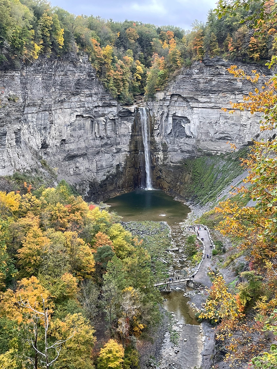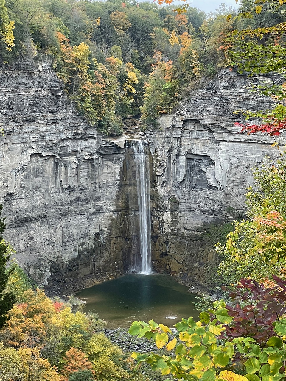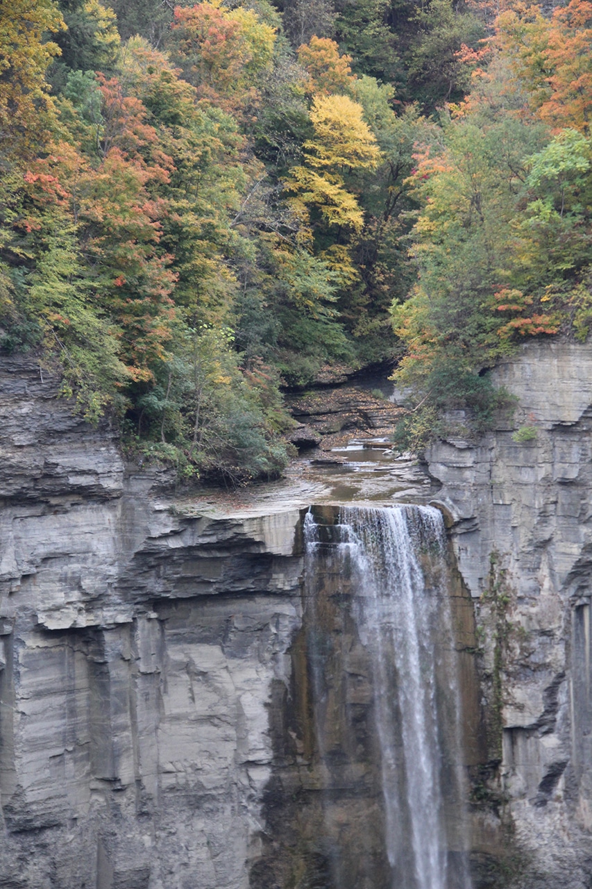 “Pronounced Tuh-GAN-nick. The falls’ name is believed to have derived from the Algonquian Taconic (“in the trees”) or Taghkanic (after a Lenape chieftain killed in battle nearby). Taughannock Falls carves a 400-foot gorge through layers of sandstone, shale and limestone that were once the bed of an ancient sea. With a 215-foot plunge, this waterfall stands three stories taller than Niagara Falls.” ~ READ MORE