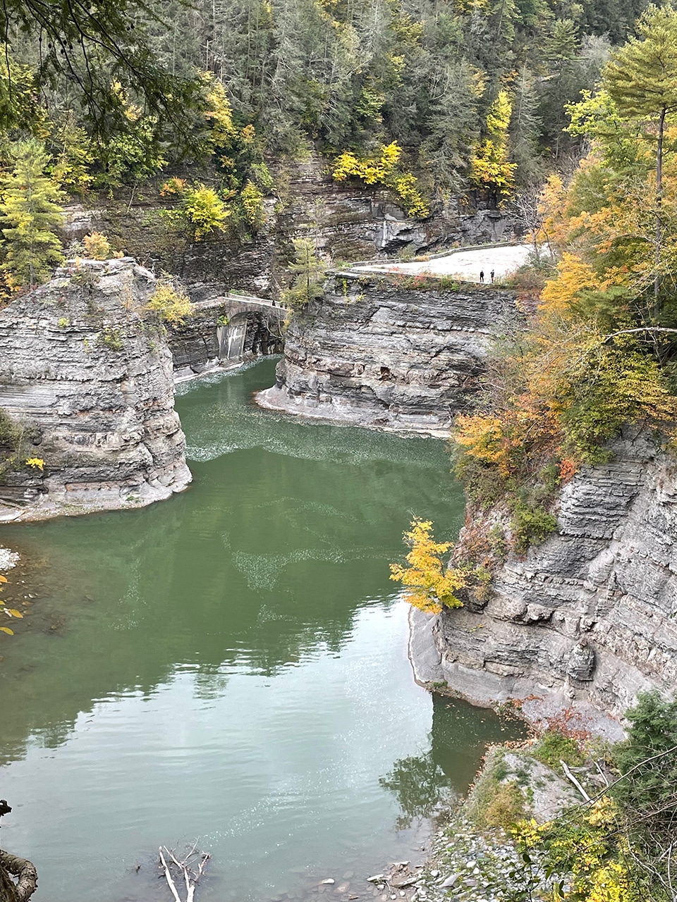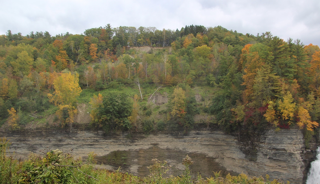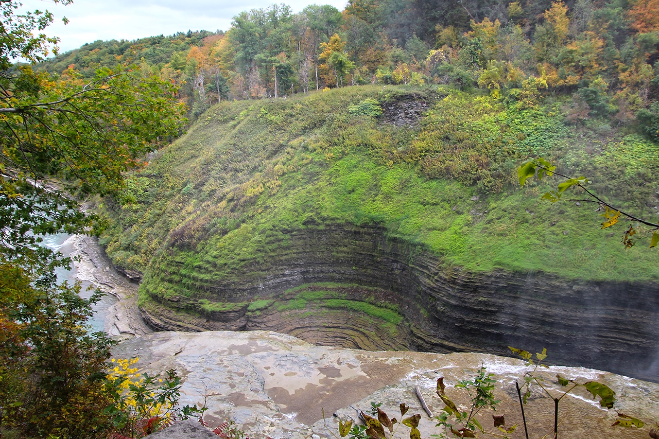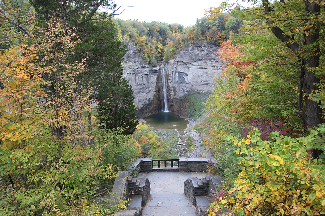 “Pronounced Tuh-GAN-nick. The falls’ name is believed to have derived from the Algonquian Taconic (“in the trees”) or Taghkanic (after a Lenape chieftain killed in battle nearby). Taughannock Falls carves a 400-foot gorge through layers of sandstone, shale and limestone that were once the bed of an ancient sea. With a 215-foot plunge, this waterfall stands three stories taller than Niagara Falls.” ~ READ MORE