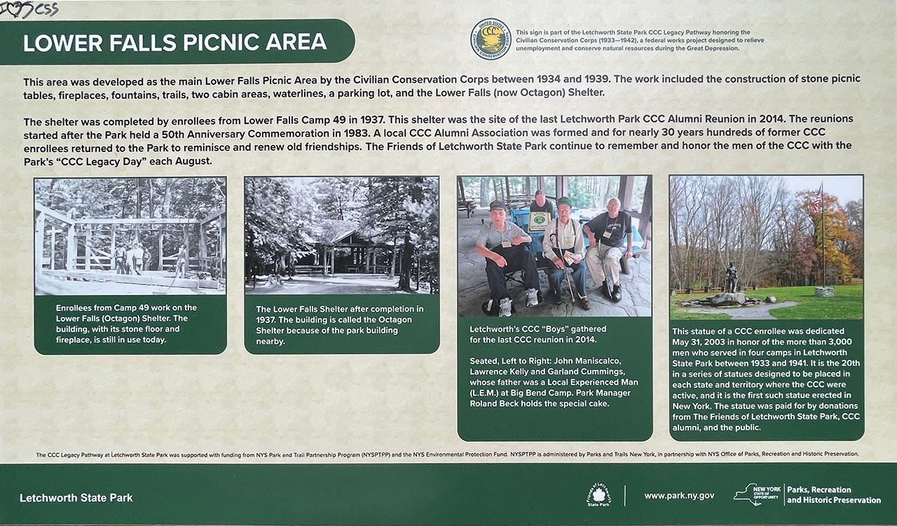 It was a good thing that our first stop was a quick one, because our next one was not! With “over 14,000 acres of natural splendor,” avid hikers and folks wanting to explore the park beyond just the falls should probably consider an overnight or two. There are over 60 miles of trails to walk, ride horses, bicycle, and cross-country ski – along with lots of other fun activities (more on photo at left).